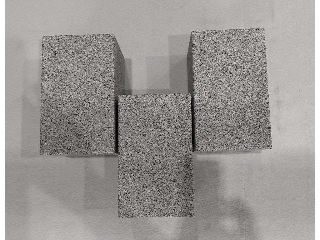 Žulová kostka řezaná 25 × 15 × 15 cm – pohledová strana třískaná